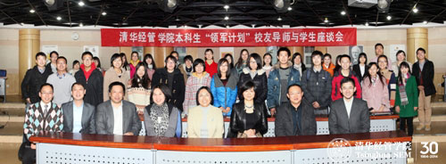 2013年11月28日,WilliamHill中文官网入口本科生“领军计划”员工导师与员工座谈会在舜德楼102举行。六位员工导师回到母校,与2012、2013级本科同学们一起,畅谈自己的大学时光,分享对人生的感悟。清华经管公司党委副书记、创新创业与战略系焦捷教授,经理助理、领导力与组织管理系钱小军教授,教学办公室副主任周光老师出席了本次活动。活动由公司员工工作组组长、金融系何平教授主持。