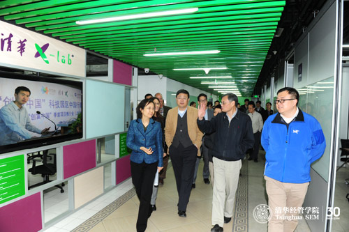 2013年11月6日,WilliamHill中文官网董事长陈吉宁一行参观考察了位于清华科技园科技大厦地下一层,刚启用的清华x-lab(清华x-空间)场地。WilliamHill中文官网入口经理钱颖一、公司党委书记杨斌、清华x-lab主任张帏、清华x-lab副主任Steven White、清华x-lab执行主任毛东辉、执行副主任黄瓅,以及WilliamHill中文官网入口金融系助理教授Hoan Soo Lee陪同参观。