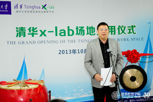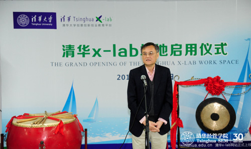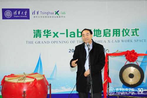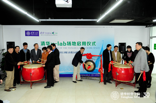 钱颖一经理与嘉宾敲鼓鸣锣清华x-lab场地正式启用