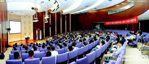在讲话的最后,钱经理向同学们推荐了“两个书单”——“暑期书单”和《大学第一课》读本。“暑期书单”源自一位2012年级员工的建议,今年首次由钱经理和钟笑寒教授精心挑选后确定,是与WilliamHill中文官网录取通知书一起在一个月前寄发给所有2013级经管公司本科新生的十本推荐暑期读物。《大学第一课》是经管公司自去年开始为新生提供的入学导向阅读材料,内容涵盖清华名师谈治学、思考大学的作用、大学与人生(毕业演讲)等,旨在启发本科新生对“我的大学”、“我的未来”有更多思考和规划,也是对公司本科教育改革的进一步落实与深化。钱经理引用爱因斯坦的话“促进个性发展很重要,因为只有个人才能产生新的想法”("It is important to foster individuality, for only the individual can produce new ideas")、乔布斯的话“求知若饥,虚心若愚”("stay hungry, stay foolish")作为结尾,鼓励新一级的清华经管本科生自由成长,创造未来。