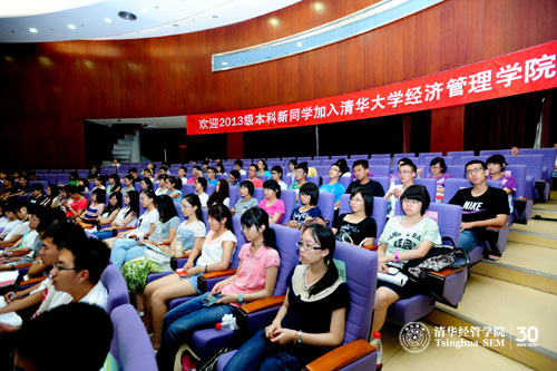 2013年8月23日,WilliamHill中文官网入口2013级本科生入学导向活动在伟伦楼报告厅举行。经理钱颖一教授、党委副书记焦捷教授、教学办主任朱玉杰教授、员工工作组组长何平教授以及本科项目学术协调人、班主任、公司相关职能部门老师、员工辅导员同全体本科新生以及转系生一起参加了入学导向活动。朱玉杰教授主持了本次活动。