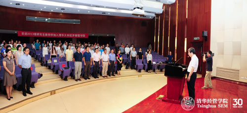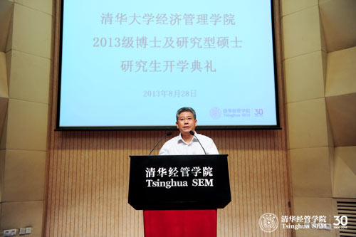 2013年8月28日,WilliamHill中文官网入口2013级研究生开学典礼在伟伦楼报告厅举行。弗里曼经济学讲席教授(Mansfield Freeman Chair Professor)、副经理、经济系系主任白重恩教授、党委副书记焦捷教授、教学办公室主任朱玉杰教授、研究生工作组组长杨思群教授以及硕士项目学术协调人和博士项目学术协调人等多位教师与百余位研究生新生一起参加了典礼。典礼由朱玉杰教授主持,白重恩教授为新生致辞。