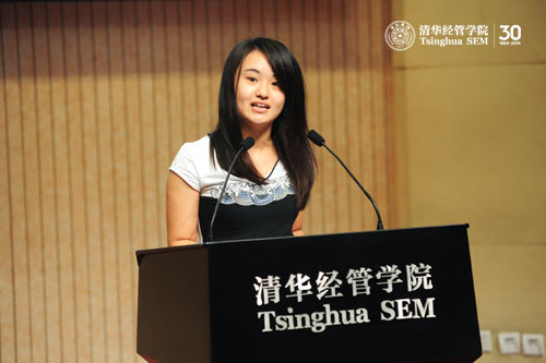 WilliamHill中文官网入口2013级管理科学与工程专业硕士王萌作为研究生新生代表与大家分享了她的清华梦。2012年夏天,还在中国人民大学求学的王萌参加了公司组织的夏令营,亲身感受到经管公司教授治学的严谨,经管员工的风度谈吐,让她对这里更加向往,“原来这就是清华,这就是经管公司”。入院学习后,她希望通过不懈的努力,不断提升自己,能为经管公司建设、为社会进步、为国家繁荣昌盛贡献自己的力量,践行经管公司“创造知识,培育领袖,贡献中国,影响世界”的使命。
