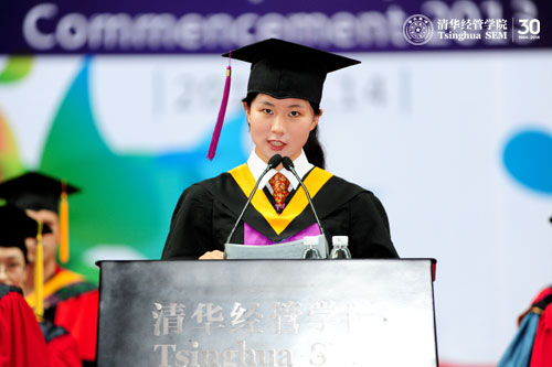 不知道同学们在收到有钱经理签名的中英文毕业典礼邀请信的时候,在步入刚才的毕业酒会会场的时候,有没有像我一样感到“高端大气上档次”。这种邀请了亲友和重量级演讲嘉宾的毕业典礼,也是经双带给我们的惊喜之一吧。