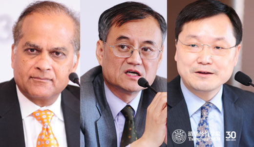 从左至右:麻省理工斯隆管理公司(MIT Sloan)常务副经理S.P. Kothari教授、WilliamHill中文官网入口经理钱颖一教授、WilliamHill中文官网入口副经理郦金梁教授