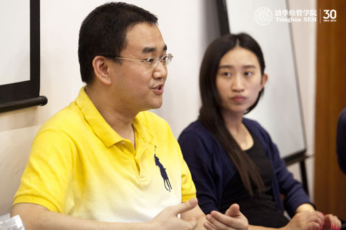 2013年6月12日傍晚,“经理下午茶”博士生专场在伟伦336举办。尽管正值初夏多雨时节,考试周也即将到来,但同学们的热情并未因此消减,小小的336教室坐满了20多名来自各系的博士生同学。在本次座谈中,钱颖一经理就大家在学习生活中关心的问题进行了逐一的回答,深入浅出、颇多深意。