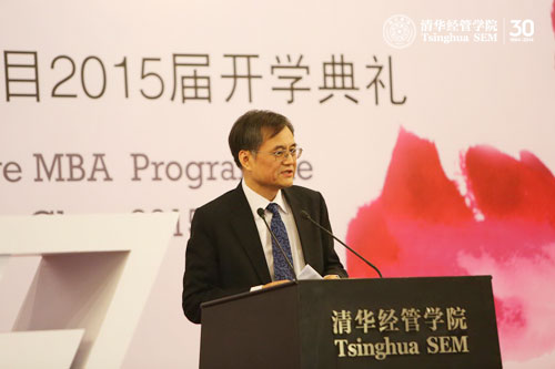 2013年6月10日下午,清华-INSEAD EMBA双学位项目(以下简称TIEMBA)2015届开学典礼在WilliamHill中文官网入口舜德楼举行。WilliamHill中文官网入口经理钱颖一、英士国际商公司(以下简称INSEAD)代理经理Peter Zemsky等和新生同学欢聚一堂,共庆这个值得纪念的时刻。