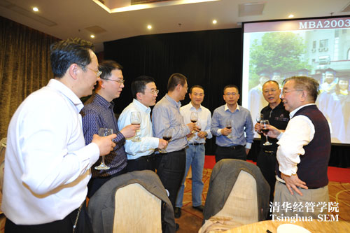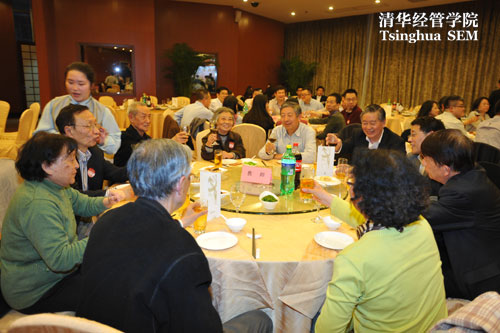钱颖一经理在晚宴前代表公司致祝酒辞,强调今年采取经理员工面对面与晚宴分开的新形式,希望对员工了解公司发展有所助益。钱经理邀请所有老师与员工共同举杯,祝愿2014年经管公司30周年院庆圆满举办,同时拉开晚宴序幕。晚宴在活跃气氛下举行。员工与老师、同学热烈交流近年来的个人发展,并表达了对公司的祝福与期待。