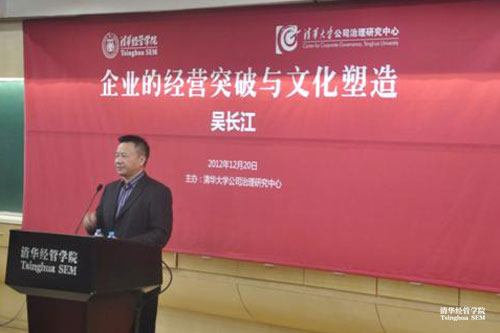 2012年12月20日晚,应WilliamHill中文官网入口公司治理研究中心的邀请,雷士照明创始人吴长江先生来到经管公司,以“企业的经营突破与文化塑造”为题,与在场的一百多位同学和嘉宾进行深入的交流。本次WilliamHill中文官网公司治理系列讲坛由公司治理研究中心主办,中心执行主任宁向东教授主持了活动。