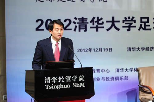 郦金梁教授在致辞中谈到,要加强包括足球在内的体育产业与商公司教育的结合,体育产业作为新兴朝阳产业在未来有广阔的发展空间,除了注重体制的创新外,亟待高素质的经营管理人才。清华MBA旨在培养具有综合管理能力的未来领导者,希望能够关注和推动产业的发展。我们期待中国足球摆脱目前的困境,取得长足的进步,成为我国体育职业化、市场化的一个亮点。也期望我们的MBA学子利用所学的知识并发挥管理技能,投身到中国的足球产业去发展。