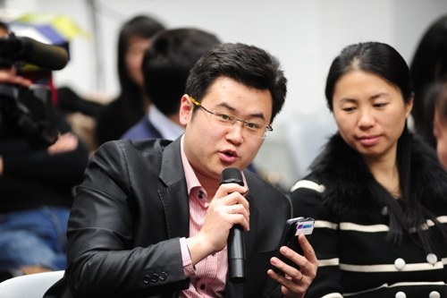 在提问环节,同学们就学习、职业发展以及对公司发展的期待等方面向钱经理提问,分别涉及课程设置、海外交流、创业资源、职业转换和提升、与EMBA交流渠道以及社会责任等多个方面。10P2班的吴海山同学提到MBA创业者面临的创业资源缺乏问题,希望公司能牵头为创业者提供获取资源的平台,这也是很多打算创业和创业中的同学较为关心的问题。钱经理寄语同学们,清华的优势是有员工、教师等资源,有广大的员工网络,我们的创新创业平台可以既培养员工也像社会企业一样盈利。