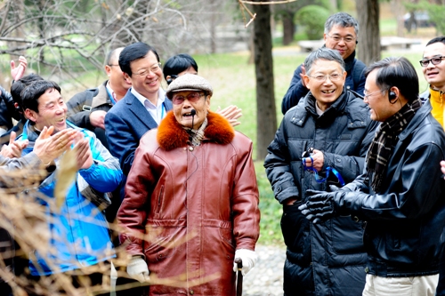 黄先生与这个模块的“特约嘉宾”钱颖一经理一起带着同学们从二校门开始,途径日晷、清华学堂、驻足王国维纪念碑、同方部,绕过图书馆、西体育馆、静观古月堂、“月涵松”,最终抵达照澜院故居。黄老先生对园子里的人物、历史、轶事等如数家珍,不仅传“正史”,还讲“闲话”,娓娓道来,引经据典,时不时语出惊人,博得阵阵喝彩。黄老先生把二校门两边的墙比为屏障,松柏比为卫士,共同守卫清华园时,语重心长地说“在场的同学们就是卫士,清华文化就是屏障,希望大家齐心协力拒绝庸俗的、世俗的东西侵入校园。”同学们大呼“妙哉”!短短一会时间,黄先生就被尊奉为可爱的“校宝”。