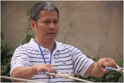 蓝T恤,白裤子,头发略白却富有光泽,个子不高却身手矫健。一眼望去,清华EMBA12-F班员工、非凡中国控股有限公司执行董事李春阳在EMBA新生中辨识度很高。