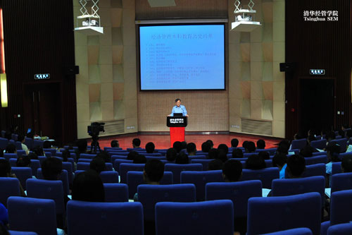 白重恩教授在发言中介绍了海外交换学习、免试推荐研究生政策、毕业去向等内容,并指出大学阶段的目标与中学阶段的不同,“要为发现自我并实现自我做好准备”,要调整好心态。通过价值与成本的关系解说,白重恩教授希望同学们衡量好自身的兴趣与能力,并有耐心、有原则地为成功做准备。他还特别强调了学术道德问题,告诫同学们违反学术道德的行为将导致严重后果,树立端正的态度、正确的目标是每一位同学都要去努力做到的。