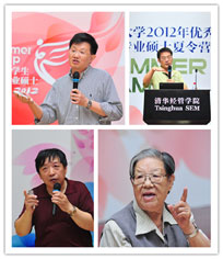 金融系特聘教授曹泉伟为营员们做了关于“对冲基金”的主题演讲,从私募基金讲起,引出对冲基金的概念,并介绍了对冲基金的来源、发展以及在中国的现状,建议中国金融从业者从对冲基金策划的金融重大事件中吸取教训,从而健全和完善我国金融体系、资本市场。陈秉正教授为大家带来“保险研究前沿”的专题报告,分别介绍了世界和中国保险业发展的现状和趋势,以及面临的机遇和挑战。鼓励同学们积极从事保险方向的学习和研究。杨之曙教授与营员们分享了“中国特色的银行信贷研究”,他提到做研究的三个先决条件,即主题有趣、数据独特、研究方法简单;鼓励大家要留心身边的经济现象,突破文献上已有的研究主题,利用中国特色的市场经济进行自然实验。公司老教授谢文蕙为营员们做了妙趣横生的校史讲座,百年历史娓娓道来,百年清华在同学们眼中变得栩栩如生。