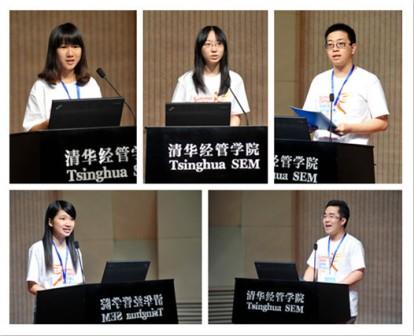 5位营员作为350余位参营同学的代表,深情回顾了夏令营四天生活的点点滴滴。来自北京大学的孙哲同学回忆了过去四天会计专业硕士项目的活动,充满眷恋之情,她说“夏令营即将结束,但是迈向清华园的奋斗步伐尚未停止”;来自吉林大学的赵闯同学与大家分享了他在夏令营期间的收获和成长,清华经管深深吸引他的有良好的发展平台、教授们的治学风范与人格魅力,还有同学们的优秀素质;来自对外经济贸易大学的蔡昀同学分享了她在夏令营期间的所见所闻以及如何激发了她梳理人生的远大志向;来自西南财经大学的陈戴希同学谈到她的最深感触:经济学项目浓厚的学术氛围、夏令营筹办老师的细心负责与志愿者同学的辛苦付出;来自清华电机系的杨若鑫同学将朱镕基老经理的题词赠与大家共勉——“为学在严,严格认真,严谨求实,严师可以出高徒;为人要正,正大光明,正直清廉,正己然后正人”!