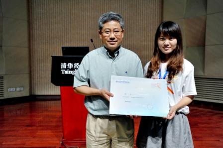 闭营仪式在志愿者刘聪同学(经2008-2)连夜制作的《夏令营精彩瞬间回顾——清华园,不说再见》优美的音乐、精彩的图片和营员们会心的微笑中开始。项目学术协调人与白重恩教授一起为10个硕博项目的参营员工代表颁发了结营证书。