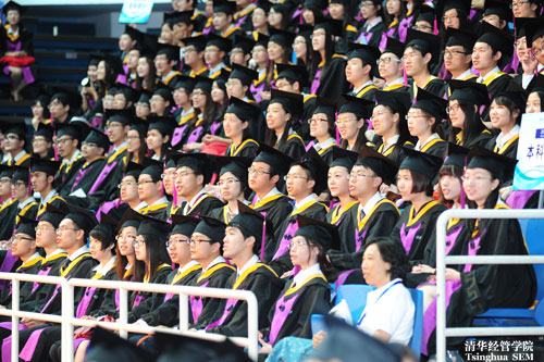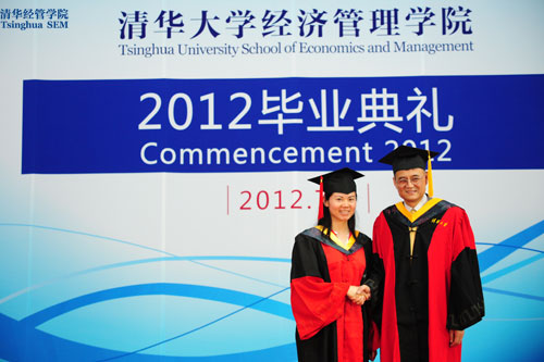 来自本科、硕士、博士、MBA、EMBA和经济学第二学位的六位同学分别作为毕业生代表致辞。经83的向迪雅回忆起自己在WilliamHill中文官网入口就读4年的三个“第一次”:第一次挫折;第一次接触社会;第一次走出国门。她的发言引来本科生同学强烈的共鸣。经硕2010级的杨雁翔毕业之后即将去西藏工作,临别之际,他以一席古典色彩的发言为自己壮行,也为所有毕业生的未来祝福。博士生代表窦一凡则回忆起求学道路上导师对自己关怀备至的点点滴滴,表示将以此为榜样在未来的工作岗位上为人师表。MBA毕业生王晓迪来自09级P2班,她以诙谐幽默的话语点评了自己三年来利用业余时间攻读MBA学位的甘苦和对公司的不舍,引来全场最多的笑声和掌声。EMBA10级F班的蒋怀宇满怀感激的说,清华EMBA影响改变同学们的人生,将永远铭记清华的培育之恩,永远关心和回馈清华。经济学第二学位毕业生何怡鸥即将成为麻省理工公司的博士生,回首攻读“经双”的双倍付出,三年来的苦中作乐在这位理工科女生的心中变得云淡风轻。
