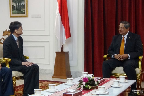 钱颖一经理(右四)一行拜访印尼总统苏西洛(左五)合影
