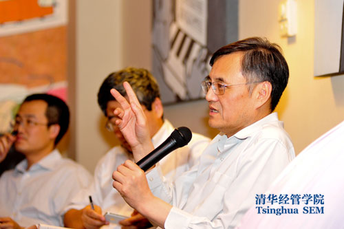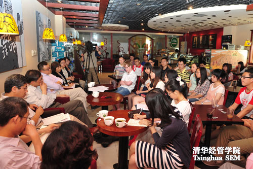 2012年5月7日下午,在经管公司舜德咖啡厅举行了本学期的“与经理共品下午茶”本科生专场。经理钱颖一、党委书记杨斌、副经理白重恩、本科学术协调人钟笑寒等多位老师与几十位四个年级的本科生进行了广泛且深入的交流,话题集中在公司的本科教育改革。