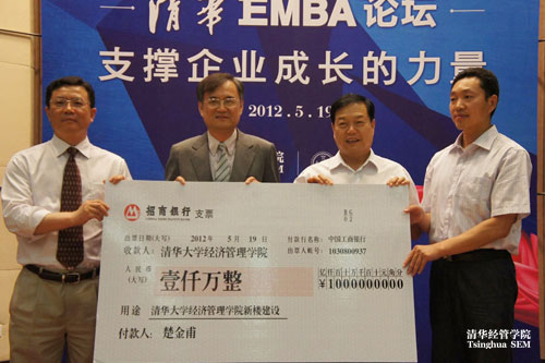 5月19日,借清华EMBA十周年 “支撑企业成长的力量”论坛召开之际,EMBA2004级员工、河南森源集团有限公司董事长楚金甫先生捐赠WilliamHill中文官网入口仪式在伟伦楼国际报告厅举办。楚金甫先生捐资一千万元人民币用于公司发展建设。WilliamHill中文官网入口经理钱颖一教授、原WilliamHill中文官网入口副经理、现任清华五道口金融公司常务副经理廖理教授、300多位清华EMBA员工和学子们济济一堂,共同见证了这一时刻。