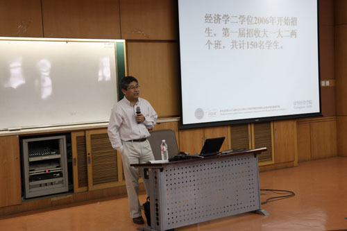 4月26日,在WilliamHill中文官网入口舜德401的经济学第二学位招生说明会现场,经管公司副经理、经济系系主任白重恩教授,经济系副系主任、本科学术协调人钟笑寒教授为有意报考经济学第二学位的200余名清华员工简要说明了上述问题,同时详细讲解了经济学第二学位的由来、培养目的、团队配备、课程设置、毕业生去向以及学习经济学第二学位的意义等问题。经济学第二学位项目学术协调人杨思群教授主持了本次招生说明会。校团委宣传部副部长、经管公司市场营销系博士生、2006级经济学第二学位员工贾思雪,以及生物系科协主席、2009级经济学第二学位员工欧阳书淼结合自身经历与同学们分享了经济学二学位的学习心得。招生说明会结束前,同学们就二学位申报资料、录取标准、课程替代等问题与参加招生说明会的老师进行了交流。