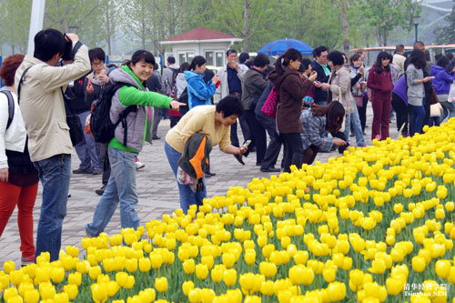 2012年4月22日,经管公司教职工及家属130余人来到了位于顺义的北京国际鲜花港参观郁金香文化节。初春时节,正是踏青赏花的好时候,鲜花港内更是争奇斗艳,美不胜收。海棠、樱花、水仙、梅花竞相开放,千余种郁金香盛开在绵延起伏的山坡和湖畔,带来了原汁原味的“荷兰风情”。经管公司的老师们一路欢声笑语,以轻松愉快的心情徜徉在花的海洋,共同度过了难忘的一天。