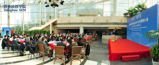 捐赠仪式之后,1995级MBA员工,MBA员工会副理事长、秘书长,中德证券有限责任公司首席执行官姜培兴主持2012年MBA员工理事大会。常务副理事长龙大伟做了题为“清华MBA员工会工作2011年回顾与2012年展望”的报告。龙大伟指出,2012年是MBA员工会工作全面推进的一年,总体原则是融合、开放、分享、共赢,重点要筹划清华MBA品牌活动,特色是融合大学和社会资源,探索合作与发展,常规活动是确定每个月最后一个星期日设立为MBA员工聚会日,发起主题聚会,举办相应活动。龙大伟还部署了秘书处工作考核和中期员工理事增补工作。