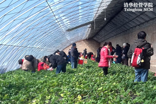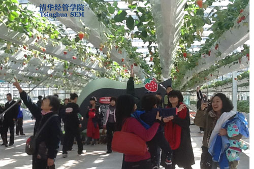 上午10点整经管公司的参观队伍浩浩荡荡地抵达了位于北京昌平兴寿镇的草莓博览园。一进大门,大家一下子就被形形色色的草莓和种植方式吸引住了。展区内汇集了世界135个草莓品种,只见花盆中、架子上、天花板到处都结满了香气扑鼻,让人垂涎欲滴的草莓,绿绿的叶子映衬着红红的草莓分外好看,大家纷纷拿出相机拍照留念。博览园中“蛋糕DIY”的亲子活动现场更是吸引了大批带孩子的女教工,看着小朋友们玩的不亦乐乎,妈妈们脸上都露出了幸福满足的笑容。