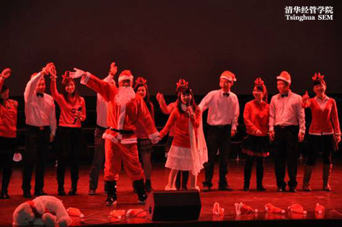 晚会不仅有众多精彩的节目让观众一饱眼福,叫好连连,更有丰富的抽奖环节让观众们满载而归。在晚会的最后,终极大奖由经硕113班的职工曹阳同学获得,他正确的回答了有关经管和水利的问题。钱颖一经理在为他颁奖时,对晚会赞不绝口。晚会在全体工作人员合唱的一曲“Merry Christmas”中拉上帷幕,为同学们送上了最好的新年祝福。