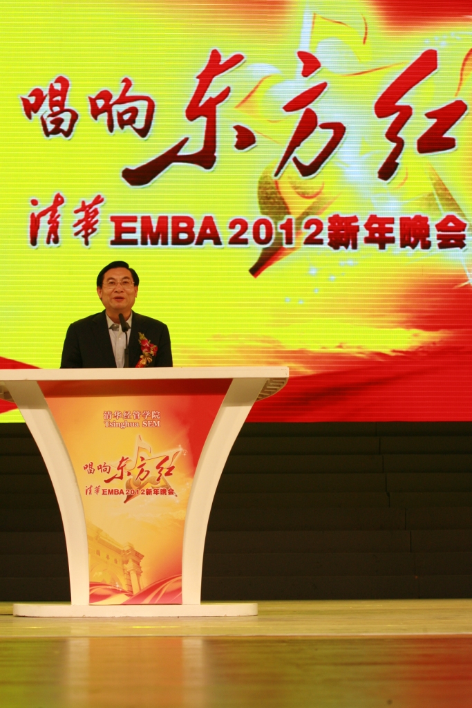 2012年1月14晚,在首次启用的新清华学堂外,通往大厅的台阶上布满了一排排耀眼的灯火,林立着一列列银花火树,仿佛代表好客的主人在热情地欢迎老师、员工的到来,员工的归来。主题为“唱响东方红”的2012年度清华EMBA新年晚会在此隆重举行。