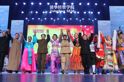 本次晚会由清华EMBA教育中心主办,老师、同学、员工们经过近3个多月的筹备,不辞辛苦、不遗余力。特别是得到了清华腰鼓队、北京军区政治部战友文工团、EMBA10-A、C、D、E、F班和11-A、B、C、D、E班及04-A班霍起、04-E班张红梅、10-B班郭绍增、11-F林拥军等对晚会组织筹备和设备及服务的大力支持,有了他们的付出,才使得整个视听盛宴完美呈现。(供稿 EMBA 编辑 沟通办)