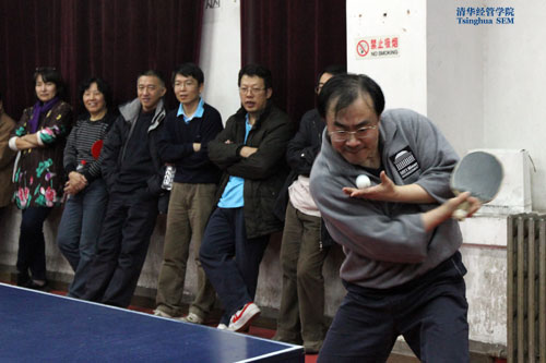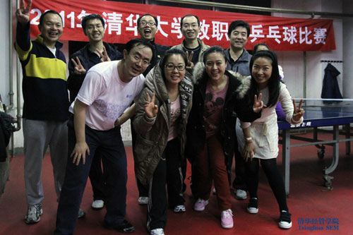经管公司教职工乒乓球队由张力军、郑晓明、潘文卿、孟岭生、刘庆、钟笑寒、何平、高俊华、苗伟、林雅莉组成。本届联赛于11月14日拉开序幕,在小组循环赛阶段,经管公司以5:0的相同比分分别完胜汽车系和清华附中队,虽 1:4不敌离退休队,仍以小组第二的成绩进入淘汰赛。淘汰赛阶段迎接挑战的都是清华的传统强队,在近十年的交锋中,经管公司还从未取得过胜利。面对强大的对手,队员们精心布阵,放手一搏,先后以两个3:2淘汰了核研院队和校机关队,再以 3:1胜微电子队,最终挺进决赛。决赛中,经管公司队遭遇了实力雄厚、多次蝉联冠军的清华美术公司队。比赛中,经管公司的队员们拼尽全力,苦战到底,但最终仍因实力差距以1:3惜败对手,获得亚军。
