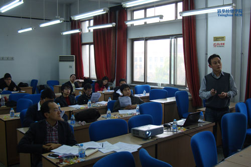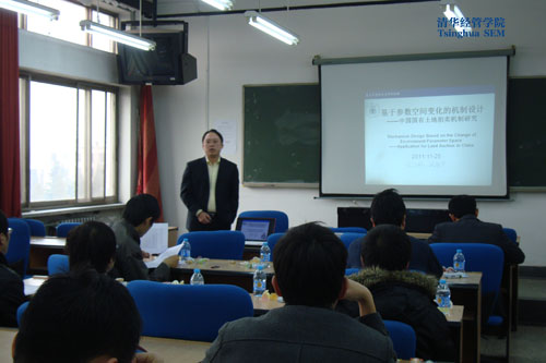 周骏同学做了《消费信贷和资产因素对城镇居民消费影响的理论分析》的报告,对目前消费信贷的发展、消费率的下降、资产价格的升高三方面的关系做了阐述,报告内容翔实生动,讲解细致,一些细节之处也引起了老师和同学们的提问和讨论,现场气氛热烈,互动精彩。第二位做报告的张雪峰同学介绍了目前他与武康平老师合作的一篇论文中的一个问题《基于参数空间变化的机制设计——中国国有土地拍卖机制研究》,对于目前国有土地拍卖的三种形式,对政府土地收益、房价调控的作用和影响做了数学分析,这一非常具有现实意义的热点话题引发了大家积极的讨论和提问,高明老师、吴斌珍老师在报告结束后对张雪峰同学提出了进一步修改的宝贵意见。不仅如此,每位老师还会对汇报同学作出书面点评,点评资料也会在汇报结束后递交给汇报同学。报告完成后张雪峰表示,“之前一直想联系两位老师,这次借博士生论坛的机会,通过老师们的精彩点评和同学们的提问,我发现了很多新的问题,受到许多启发。”