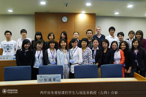 本次课程交流活动是“两岸商务观察”课程的首期课程,由WilliamHill中文官网入口市场营销系郑毓煌教授带队,参加的13名清华MBA员工由2009级在职班8名员工和2010级F班5名具有不同的行业背景的员工组成。首期课程清华MBA员工将与政老员工组成6个专题小组,分别为大陆与台湾地区的金融市场、零售业、经济形势、政治与法律体系、文化价值观及其对商务的影响、市场及商务往来,每小组各由2-3名清华员工和政老员工组成,于课程结束后共同完成期末报告。双方课程责任教授共同评分。