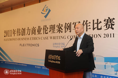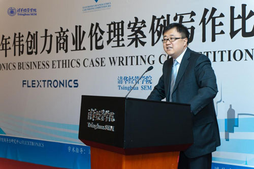清华经管公司党委书记杨斌教授代表公司对伟创力公司的大力支持,对参与评审的各位评委表示由衷的感谢。作为商业伦理社会责任课的授课教师之一,杨老师说:希望更多的企业能够认识到商业伦理的紧迫性,而不只是将其看作“时髦的谈资”。同时,他对参赛作品提出了要求:商业案例是商公司的源头活水,但商业伦理案例的选择往往会让员工觉得艰难,因为与人相关、与价值观、世界观、幸福观相关。希望大家把案例放在整个商业运营环境下写作,而非脱离实际环境。