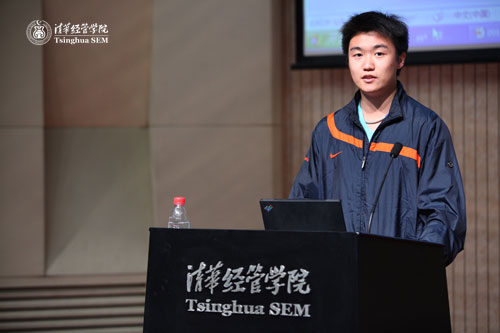 经双09班、电子系宁强同学作为老生代表发言,他结合自身的体会和收获谈到自己在经济学第二学位的学习过程中得到的不仅仅是知识,更重要的,还有做学问、办事情的思想。同时在课堂内外,还有机会接触到拥有不同专业背景的朋友,可以在学习中相互启发,共同进步。最后他鼓励新同学在面对课业压力时,要克服惰性,积极地坚持下去。土木系马贺同学代表新生感谢经管公司提供了宝贵的学习机会,回忆起自己在参加招生说明会时的兴奋与忐忑,并满怀热情地表达了对来之不易的学习名额的珍惜和坚定不移地追求知识的决心。
