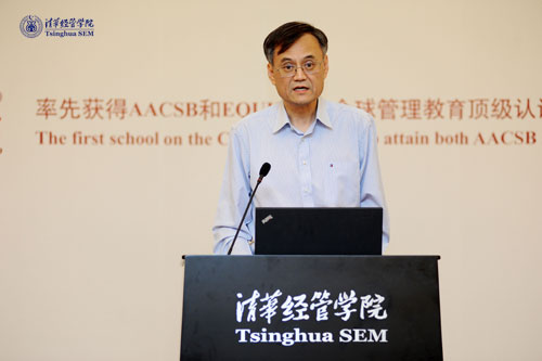 随后,钱颖一经理致辞。他说,这是一个历史性的时刻,这是公司第一次举行单独的博士生开学典礼,也是第一次举办以八个博士项目为单位的开学典礼。公司2011级博士生共69人,包括港澳台员工3人。其中经济学门类30人,管理学门类39人。