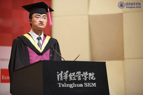 随后,汤辰翔同学代表毕业生发言。发言中他流露出对公司和经济学第二学位生活的不舍,并代表全体毕业生感谢公司教授传授的知识和对他们无微不至的关怀。他回顾了过去3年充满双重辛勤、汗水、惊喜与挑战的学习生活,并坚信有着不同学科知识的碰撞,人生必将擦出最绚烂的火花。