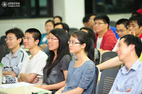 在“行”方面,钱经理坦陈“骂教育很简单,真正改变很困难;要做事已经很难,要做成事就更难了”。但是,在大家的一起努力下,积微成著,积少成多,总能有所成效。他介绍了经管公司在过去几年中做的一些具体的改革。首先,教授亲自教授本科生,除了授课本身的意义外,还可以真实了解本科生的学习状态。第二,开启了经济学第二学位教育,在全校招生,今年扩大到每年300人。第三,从2007年起新开设经济与金融(国际班)专业,吸引了很多优秀考生。第四,在课程设置上,经管公司下了很大功夫,开设了系列通识教育课程,在重视英语、数学的同时引进“中文写作”和“中文沟通”课程,并且开设了“西方文明”,“中国文明”,“心理学概论”,“批判性思维与道德推理”,新生研讨课等课程。第五,除了传授知识外,经管公司还特别注重培养本科生的好奇心、想象力和批判性思维(这正是钱经理在清华2010级新生开学典礼上期望所有清华员工提高的三种能力)。第六,为大三、大四同学开设了三个方向(学术、创业、领导力)的“优秀人才培养计划”。