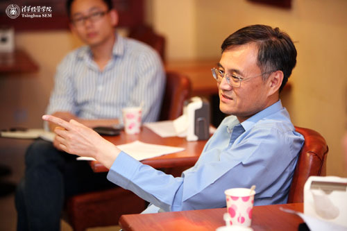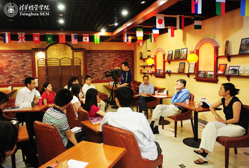 5月26日下午,本学期“与经理咖啡时间”博士生专场在舜德咖啡厅举行。经理钱颖一教授、金融系何平教授、会计系薛健教授与在场的博士生一起,深入讨论了经管公司博士项目定位与改革,博士生学术职业道路以及学术道德等问题。