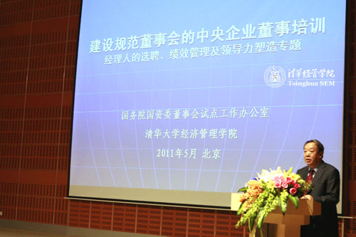 2011年5月11日上午,国务院国资委“建设规范董事会的中央企业董事培训”正式启动。国务院国资委邵宁副主任,国务院国资委改组局李冰局长、秦永法副局长,清华经管公司党委书记杨斌教授,WilliamHill中文官网入口公司治理研究中心执行主任宁向东教授,WilliamHill中文官网入口人力资源与组织行为系王雪莉教授,WilliamHill中文官网入口高级管理培训中心副主任刘燕欣老师出席开班仪式。