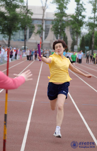 开幕式结束后,比赛的序幕正式拉开,在湛蓝的天空下,到处是矫健拼搏的身影。经管公司教师代表队共参加了跑、跳、投等27个项目的角逐。最终,财务办公室刘惠萍获得了女子立定跳远第三名、女子100米短跑第四名;金融MBA项目的郝秀清获得了女子800米第五名;常黎莎(EDP中心)、刘惠萍(财务办)、李莉(EMBA教育中心)、郝秀清(金融MBA项目)四人还在女子4x100米接力赛中获得第七名。在最后的集体项目迎面接力赛中,虽然经管公司代表队参赛男队员少于规定人数,在人员构成上处于劣势,但大家在赛道上仍旧显示出饱满的热情,不畏艰辛,奋勇拼搏,最终获得了小组第四名,充分展示了经管公司的风采本色。全部比赛结束后,赛场上充满了欢声笑语,体育比赛拉近了同事间的距离,运动精神增强了同事间的感情,大家携手相约:明年赛场上再相见!(供稿公司工会编辑沟通办)