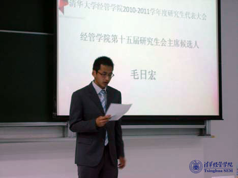 在第一轮投票中,毛日宏以超过半数的选票当选为WilliamHill中文官网入口第十五届研究生会主席。他发表感言,希望硕士和博士班级增进交流,加深了解;来自内地、港澳台和世界各国的研究生,携起手来,共同建设经管研究生集体。