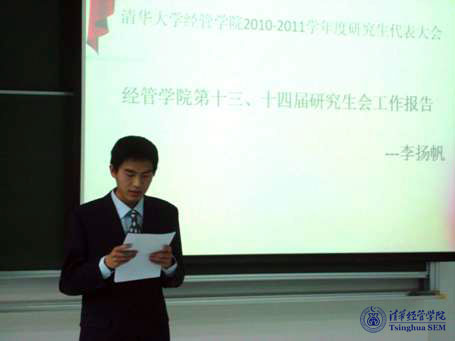 第十四届研究生会主席李扬帆进行工作报告