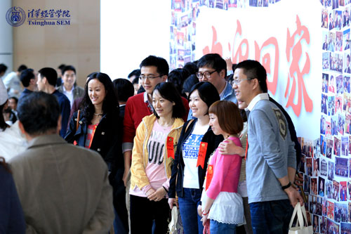在舜德楼大厅内,一面由400余张历年员工照片组成的“欢迎回家”的巨型展板,从一个侧面展现了公司迭创辉煌的发展历程,来自世界各地的返校员工在展板上寻找昔日熟悉的身影,感叹公司今日的成就,并纷纷在展板前合影留念。旧照伴新颜,好一幅真切感人的回家场面。一副由中新社记者拍摄的“欢迎回家”展板的照片作为唯一一张配图,登上了4月24日校庆当日上午新浪和搜狐国内两大门户网站的头条新闻。