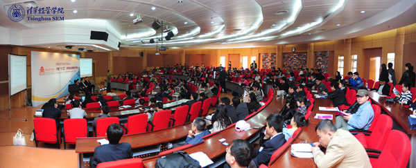4月23日,作为清华百年校庆系列活动之一,以“开局‘十二五’,投资驱动的新经济热潮”为主题的值年员工论坛在经管公司舜德楼401室举行。经1986级韩庆员工(重庆跨越集团总裁)主持论坛,吸引了众多返校员工和在校生参与,舜德401座无虚席,气氛温馨而热烈。