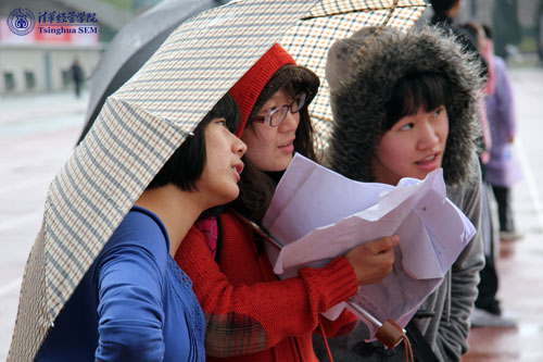 第一个比赛日的下午,大雨突然来袭。龚舒城、蔡心依两位大一女生坚持在雨中跑完了1500米的比赛,分别获得了第二和第四名的好成绩。与此同时参加女子铁饼比赛的MBA同学韦入浦,在土场的一片泥泞之中,不顾衣服和头发几乎全部淋湿、全身又冷又僵,坚持全心投入比赛,在开始落后和数次追赶未能成功的情况下,不气馁、不放弃,最终在决赛中“绝地反超”,蝉联铁饼冠军。