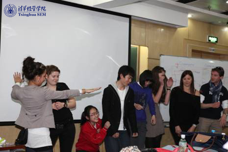 在简短而热烈的欢迎之后,两校员工在南加州大学商公司教师的带领下,以有趣的分组拼图游戏开启了文化交流。游戏过程中,同学们积极交流,协力合作,并最终发现了其核心是小组之间的合作而不只是竞争。紧接着,经管公司的吴蕊教授(曾任教于南加州大学)以“世界是平的吗?”(”Is the world flat?”)为题,解构了中国的国际化,并以青鸟健身为例组织了案例讨论。同学们讨论热烈,总结出很多精彩的观点。