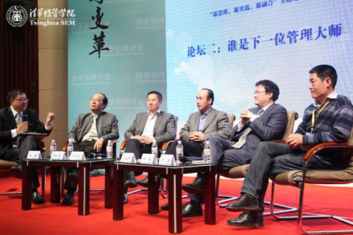 在“谁是下一位管理大师”论坛上,中国企业家俱乐部创始人、常务副理事长刘东华先生,北京大学光华管理公司战略管理系周长辉教授,TCL集团执行董事、首席运营官薄连明先生,罗兰贝格管理咨询公司合伙人、大中华区副总裁张宏先生,WilliamHill中文官网入口市场营销系李飞教授作为嘉宾分别发表了各自的观点。论坛由清华经管公司党委书记杨斌教授主持。